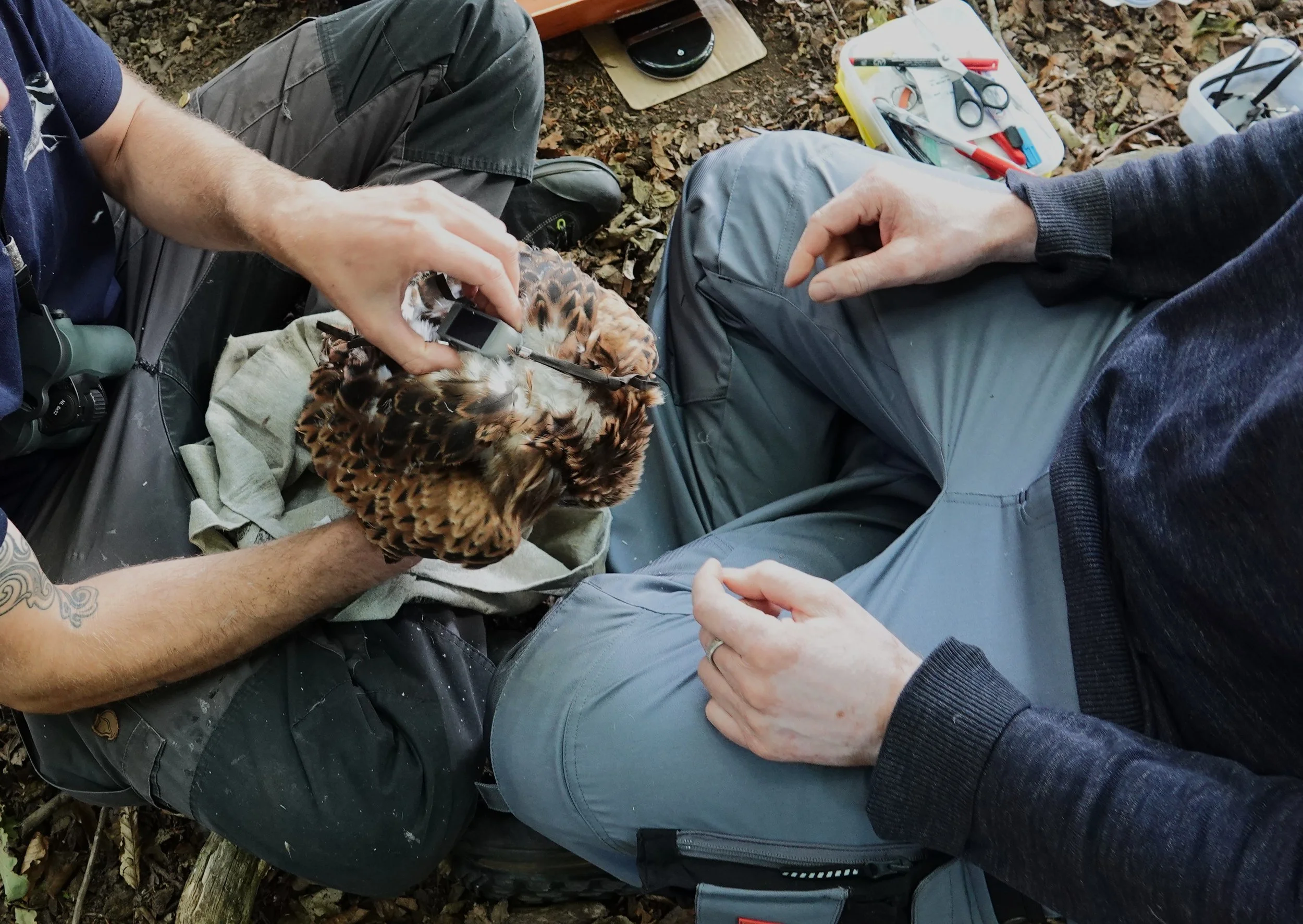 Rotmilan beim Anlegen des Senders. Foto: I. Eckle
