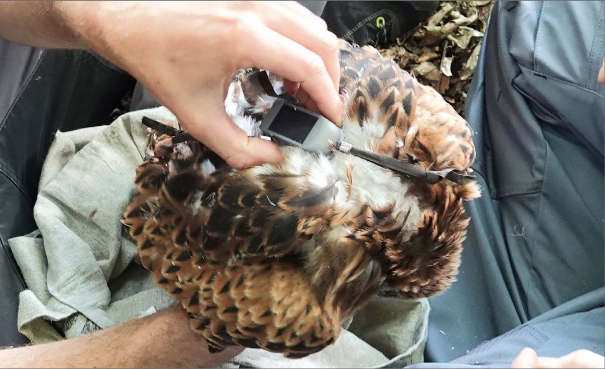 (5) Besenderung eines Jungvogels. Foto: Isabell Eckle.